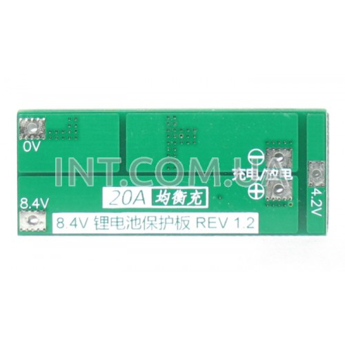 BMS модуль защиты 2S Li-Ion (Li-Po) аккумуляторов / Imax=20A, U=8,4V, баланс.., 48x30mm
