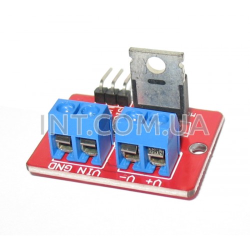 Модуль драйвера на популярном MOSFET транзисторе IRF520. Применяется как силовой ключ, а также как регулятор мощности, передаваемой в нагрузку. В первом случае - позволяет включать/выключать мощную нагрузку с током до 5А и напряжением до 24V. Во втором - позволяет управлять мощностью, передаваемой в нагрузку, при помощи ШИМ. Для этого на вход модуля необходимо подать ШИМ-сигнал. Скважность ШИМ будет пропорциональна выходной мощности передаваемой в нагрузку. Таким образом, можно регулировать яркость светодиодной ленты, регулировать обороты двигателя и т.п..