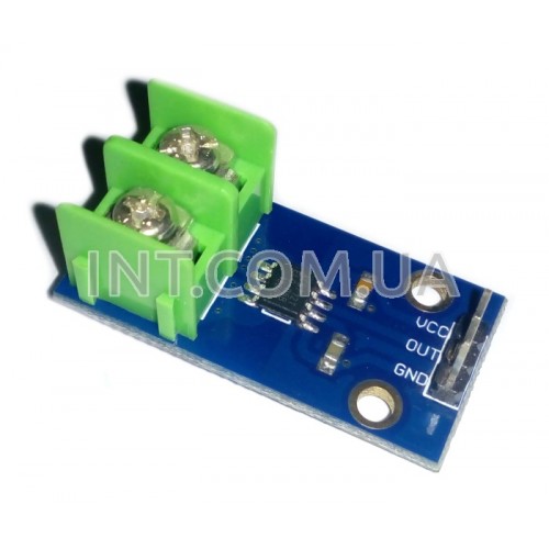 Модуль предназначен для контроля протекающего тока в цепи. Работает на эффекте Холла. Выход модуля подключается к аналоговому входу микроконтроллера и измеряется поступившее напряжение из расчета 66 mV на 1 А. В зависимости от включения может измерять переменный ток.