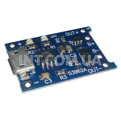 Модуль зарядки одно-элементных Li-ion литий-ионных аккумуляторов рассчитанных на напряжение 3.7 ... 4.2 V. На плате также размещена защита. Основа модуля: микросхема TP4056 - контроллер зарядки, DW01 - микосхема защиты, ML8205A - сдвоенный MOSFET работающий в режиме ключа. Заряд происходит по принципу постоянный ток/постоянное напряжение (CC/CV). Позволяет заряжать аккумулятор током до 1 А. Ток устанавливается при помощи токозадающего резистора Rprog номинал которого 1.2k ... 10k . Чем больше номинал сопротивления - тем меньше зарядный ток. Подробнее см. в таблице представленной ниже. По умолчанию ток заряда установлен на 1A. Источник питания должен обеспечивать ток с некоторым запасом. Также на модуле установлены два светодиода для индикации процесса заряда. Один светодиод - сигнализирует и проходящем процессе заряда, второй - о завершенной зарядке.