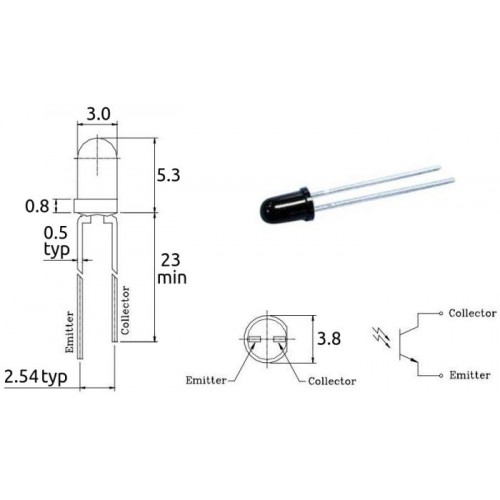 Кремниевый NPN фото-транзистор со встроенной линзой в специальном затемненном корпусе. Работает в ИК диапазоне.