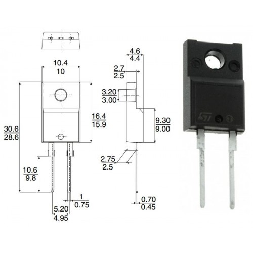 Диод быстродействующий / STTH15R06FP / I=15A / U=600V / TO-220FPAC / STM / t=50ns