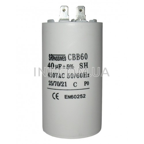 40mkF / 450VAC / плен. металл. пусковой, СВВ60-H / 50/60Hz / 4 клеммы / 50x95mm / ±5% / SR PASSIVES