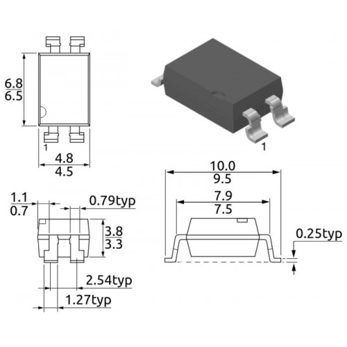 LTV-814S-A / оптопара / 2 св.диод-NPN тр. / 1-канал / SMD4 / LITEON